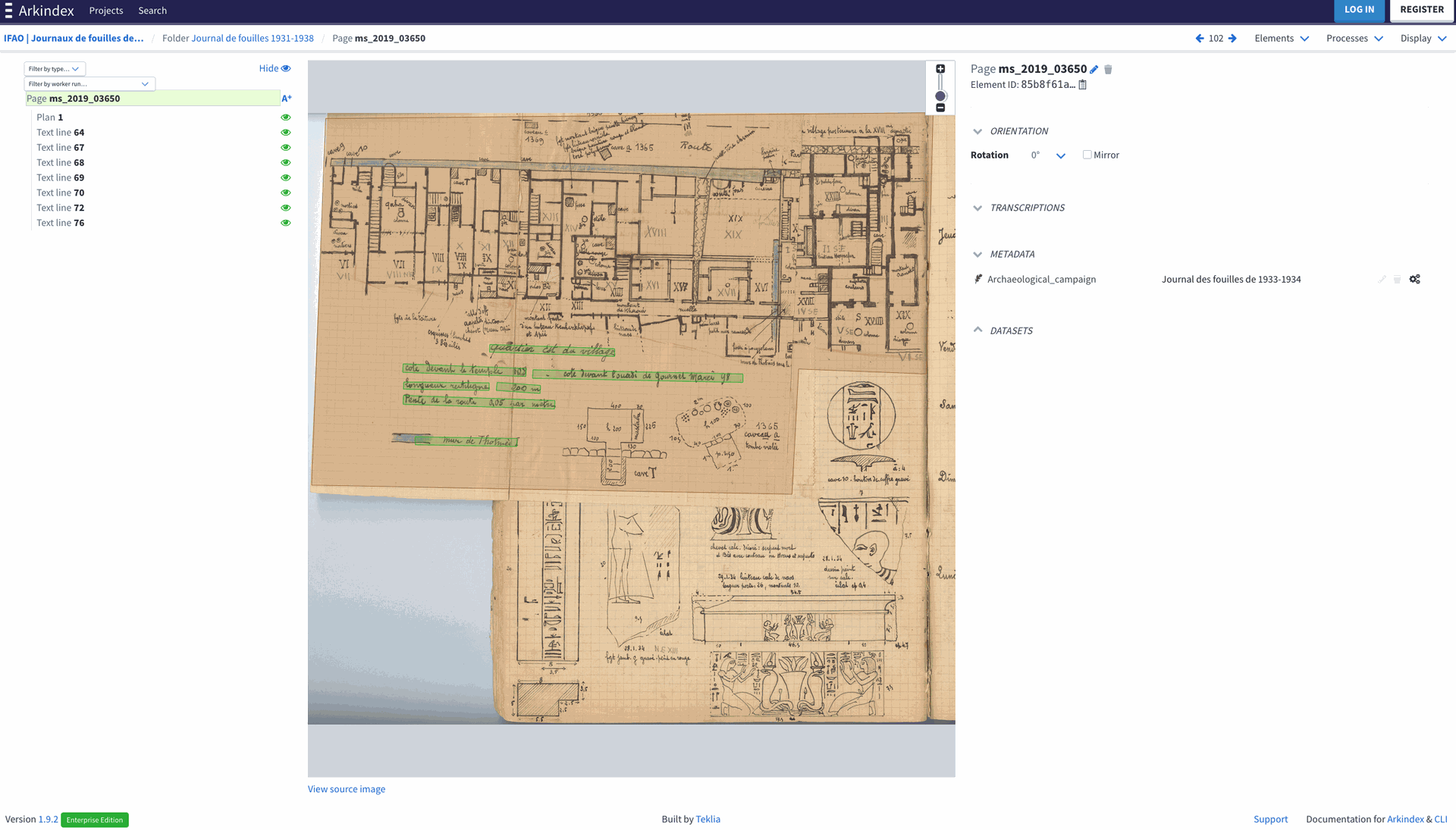- Gestion de projet personnalisable : Arkindex vous offre la liberté de définir des flux de travail complexes adaptés à vos besoins de traitement. De l'analyse de la mise en page et la classification à la reconnaissance de texte (OCR/HTR), en passant par la reconnaissance d'entités nommées et la génération de métadonnées, vous pouvez organiser chaque étape pour obtenir le résultat souhaité.