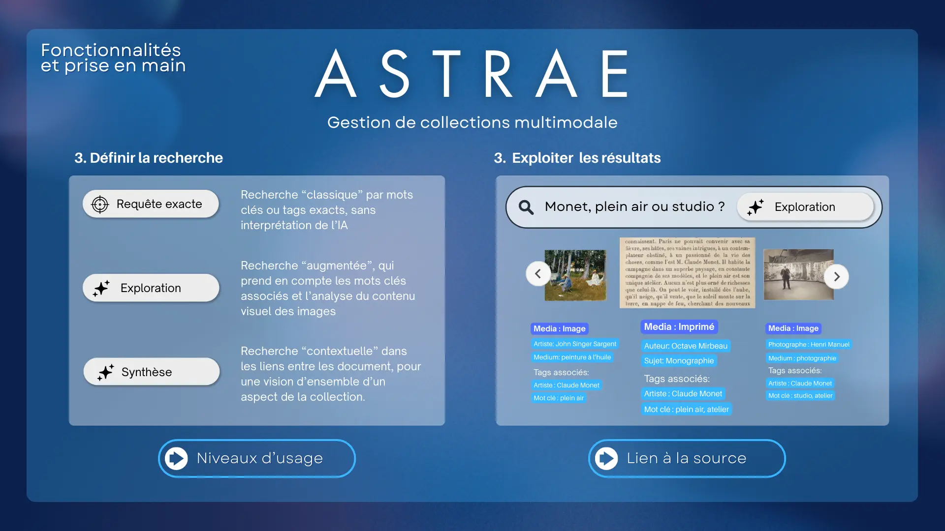 Astrae est le premier logiciel web de gestion et d'exploration des collections d'art, d'archives,