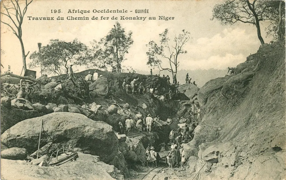 Illustration : GUINÉE – Travaux du Chemin de fer de Konakry au Niger. CGF1 195. Collection Edmond Fortier. https://edmondfortier.org.br/
