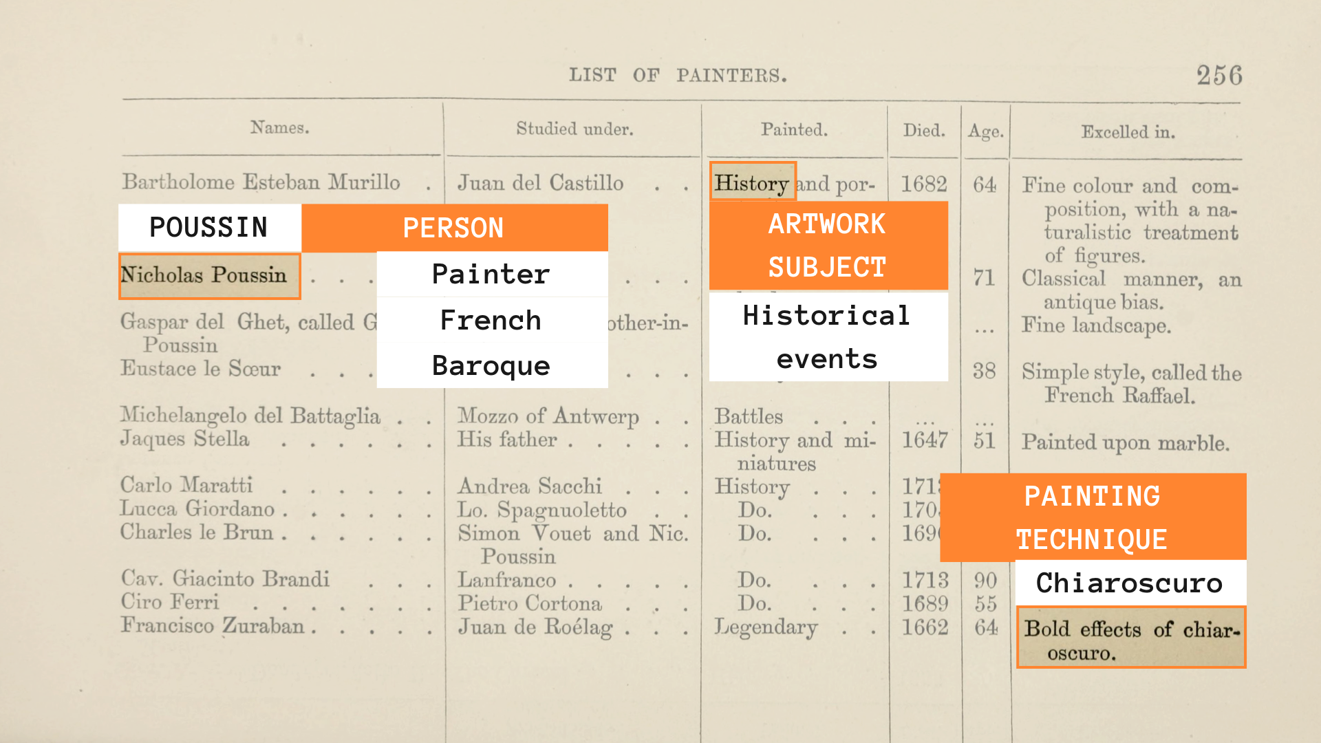 La NER est une technologie précieuse pour organiser et enrichir les données relatives au patrimoine culturel. Elle permet d'extraire automatiquement les noms d'artistes, de personnages historiques, de lieux, de dates et d'objets culturels à partir des collections, de catalogues d'exposition ou des archives de récolement.