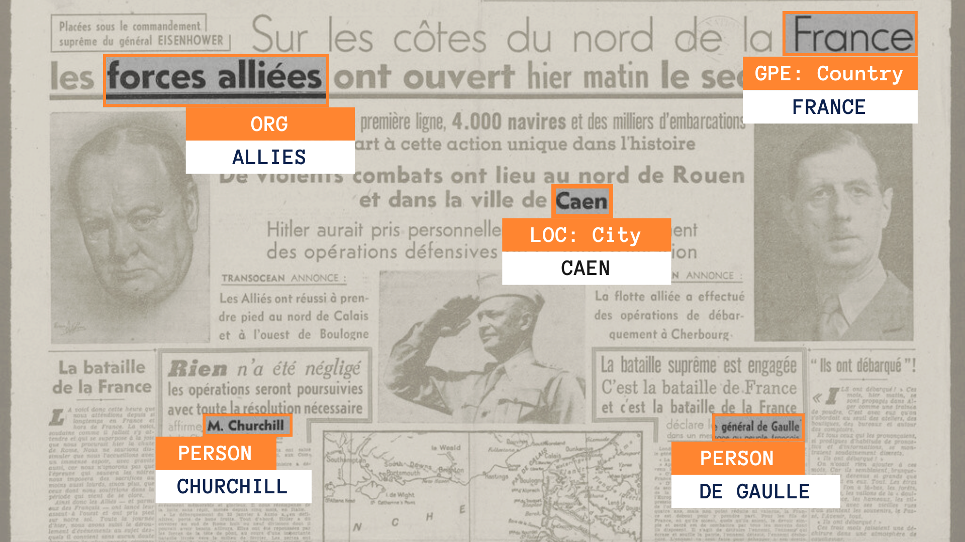 La NER détecte les entités sur une page en analysant le texte afin de trouver d'y trouver des références. Le modèle examine chaque mot dans son contexte afin de comprendre sa signification et de déterminer si il représente quelque chose d'important, comme une personne ou un lieu. Dans ce cas, le mot ou le groupe de mot détecté devient une "entité".