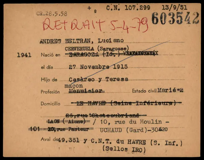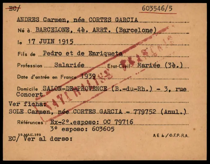 Le fichier espagnol compte 185 302 fiches contenues dans 121 tiroirs, répertoriant dans des fiches les réfugiés espagnols entre 1945 et 1981